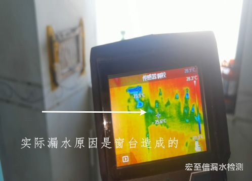 我們到達該客戶家后依照以往的漏水檢測慣例對該客戶家水管進行了打壓測試,測試發(fā)現水管不存在漏水現象之后對客戶的漏水現象進行了分析,并使用相關漏水檢測儀器對衛(wèi)生間進行了檢測與分析如下圖,發(fā)現漏水原因是有窗臺漏水造成的,與地面防水等無任何關系看來客戶上次的維修費用是百花了。