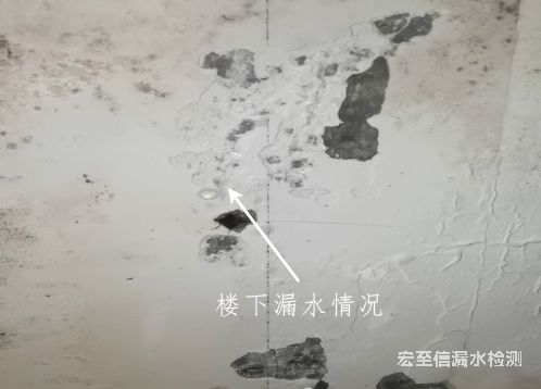 案例簡述:該客戶樓下反應樓上衛(wèi)生間往樓下漏水,上圖為我們到達漏水現場拍攝的照片,從圖片中可以明顯看出樓下衛(wèi)生間頂部有水滴的存在,這個問題的出現也是一直困擾著樓上用戶的正常生活,該客戶在外面沒有聯系到我們之前曾經聯系過幾家漏水檢測公司,得到了兩種答案分別是1、衛(wèi)生間漏水原因是衛(wèi)生間地面防水不好造成的,2、衛(wèi)生間漏水原因是有馬桶沒有正確安裝造成的,并提供了如下維修方案:方案一、將衛(wèi)生間地面瓷磚清除重新做防水,方案二、在衛(wèi)生間地面進行注漿(聲稱使用"進口材料、高納米材料"),方案三、對馬桶進行重新安裝,改客戶選擇了方案二、三對衛(wèi)生間進行了處理,單處理過后衛(wèi)生間漏水情況依舊存在。